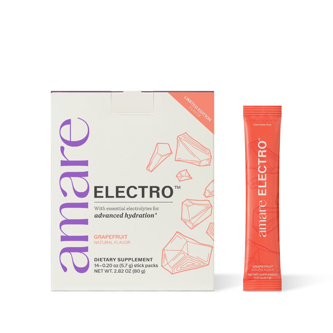 Experience hydration at a cellular level with new, limited-edition Amare Electro Grapefruit—a refreshing electrolyte drink mix with a 2:1 sodium-to-potassium ratio to help you rehydrate and recharge.*