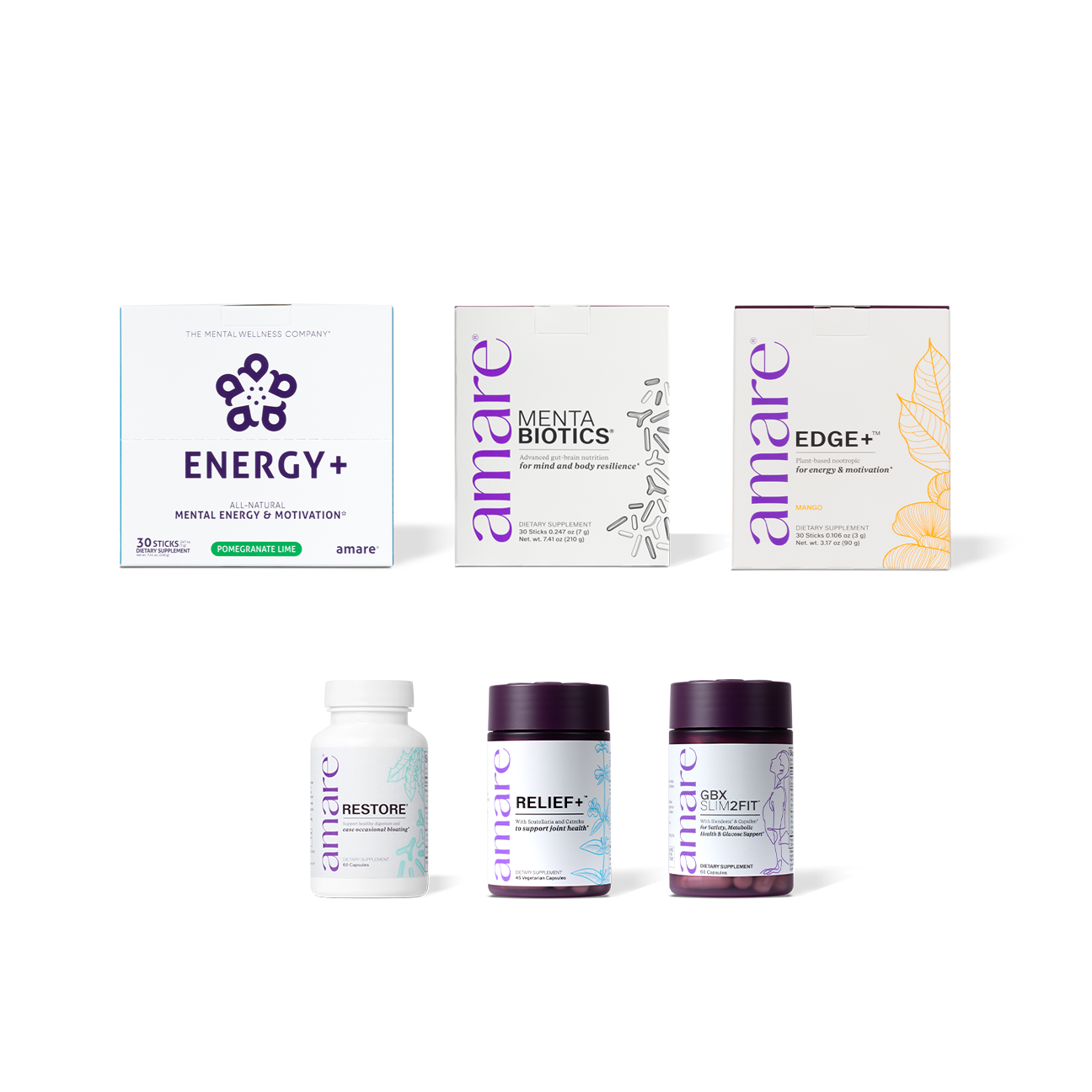 Move toward a healthier, stronger you with Amare Happy Fit Pack™. Paired with daily movement and a healthy lifestyle, this pack is specifically curated to support weight management and a healthy gut microbiome in a variety of ways. In addition to your choice of Digestive or Restore®, this pack includes our most popular “Happy Juice Pack” and the incredible stimulant free duo of Amare GBX Fit™ and Amare GBX Burn™ to help you lose weight and keep it off.*