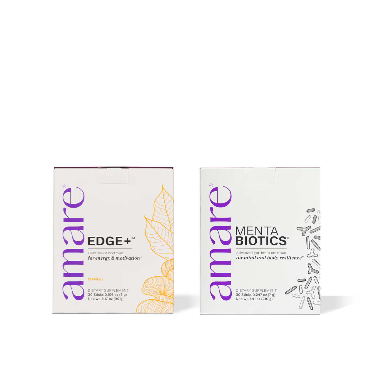 Includes Amare’s three most popular and trusted mental wellness products: (1) MentaBiotics, (1) Energy+, (1) Amare EDGE